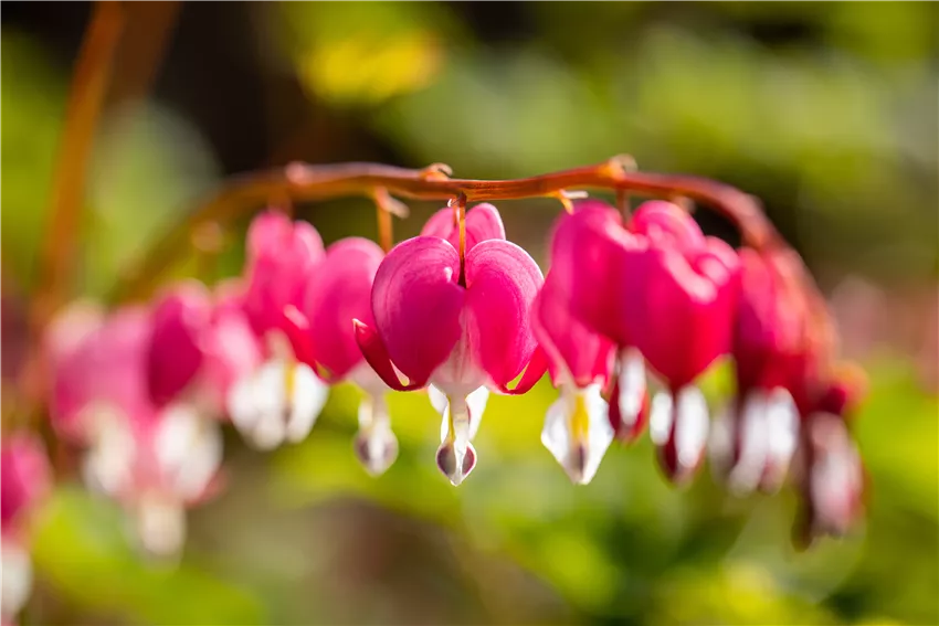 Wer es besonders anspruchslos mag, der ist bei Pflanzen für den Schatten mit der Funkie am besten beraten. Diese pflegeleichte Staude ist bei vielen Gartenbesitzern beliebt und das nicht ohne Grund! Sie macht kaum Arbeit, entwickelt sich und wächst fast von allein und hat wunderschöne Akzente zu bieten. Als Blattschmuckstaude findet die Funkie immer wieder ihren Platz in unseren Gärten und ein besonderes Highlight sind dabei dieses Mal nicht die Blüten, obwohl die auch wunderschön anzusehen sind. Es sind die Blattmuster, die die Staude zu bieten hat und die sie so einzigartig machen. Ein weiterer Kandidat, wenn es um Pflanzen für den Schatten geht, ist der Farn. Er ist die klassische Waldpflanze und daher wenig Licht gewöhnt. Er braucht nicht viel um glücklich zu sein und macht ebenso wie die Funkie wenig Arbeit. Das Tränende Herz kommt dann noch mit wunderschönen Blüten um die Ecke, die ihren Namen alle Ehre machen. Eine besondere Pflanze für den Schatten, die mit bunten Blüten für zusätzliche farbliche Akzente sorgt. Auch als Herzerlstock bezeichnet, ist kaum eine Pflanze im Garten romantischer. Ursprünglich kommt es aus lichten Schattenwäldern in Korea und China und ist bei uns mittlerweile als Gartenpflanze sehr beliebt. Geht’s noch romantischer? Na sicher! Aufgrund der Blütenform wird das Tränende Herz der Gattung der Herzblumen zugeordnet.
