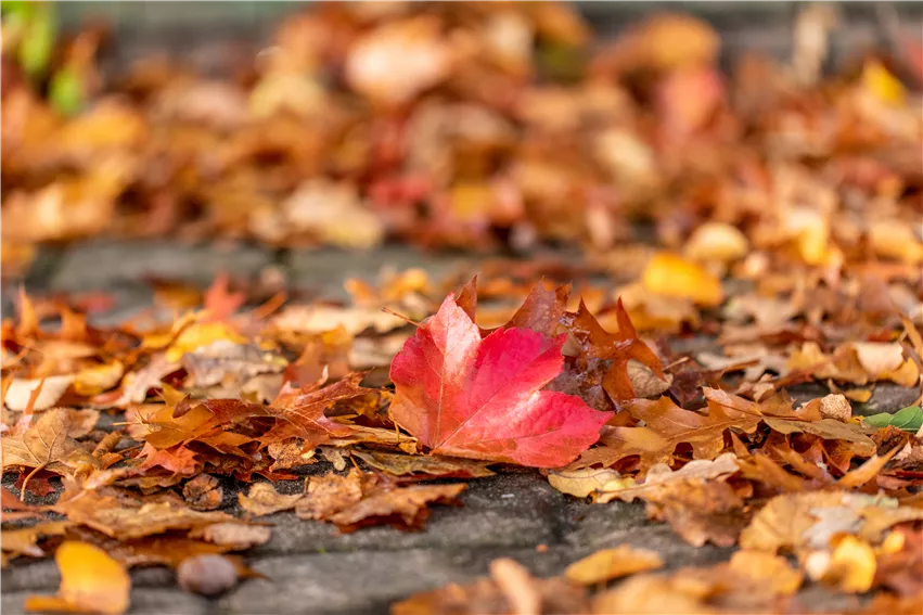 Herbstlaub auf Boden Nicht nur das Dekorieren und Bepflanzen ist für den Garten zu Halloween wichtig. Auch die Vorbereitung auf den danach folgenden Winter sind wichtig und sollte nicht vergessen werden. Wie gut, dass so ein Laubhaufen zu Halloween passt und den Spaß im Garten mit einem gruseligen Kostüm noch ein bisschen mehr steigert. Hier kann man sich hervorragend verstecken und auf den nächsten Angriff oder Erschrecker warten. Und ein Laubhaufen bietet gleichzeitig Schutz für Igel und Co. Außerdem sollte vor allem das Laub vom Rasen entfernt werden, damit die Halme atmen können und nicht eingehen. So kann man das Angenehme mit dem Nützlichen verbinden und den Garten winterfest machen und gleichzeitig für die passende Atmosphäre im Garten zu Halloween sorgen. Spinnenweben dürfen dabei übrigens auch erstmal hängen bleiben, sie liefern den Krabbeltieren nämlich Nahrung und sehen wunderschön aus, wenn der Morgentau auf ihnen liegt. Und ganz nebenbei sind sie natürlich unfassbar gruselig und passen perfekt in die Halloweenstimmung im eigenen Garten.