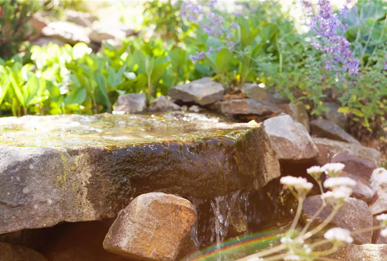 Wenn es um den Steingarten geht, dann geht der erste Gedanke an die Steine, die in diesem besonderen Garten Platz finden sollen. Der zweite Gedanke geht an die Pflanzen, die im Steingarten wachsen sollen. Und was kommt dann? Auch wenn der Gedanke nicht unbedingt nahe liegt: viele Flüsse entspringen aus einem Gebirge. Deshalb passen Steine und Wasser schon von Natur aus perfekt zusammen. Kein Wunder also, dass in dem ein oder anderen Steingarten ein Wasserspiel zu finden ist. Ob Bachlauf oder Teich bleibt dabei ganz dem Gartenbesitzer selbst überlassen. Wer ein Gefälle in der Nähe hat, der kann sich natürlich kinderleicht einen Bachlauf anlegen, den er mit Steinen einrahmt und mit Pflanzen aufblühen lässt. Aber auch ein ebener Garten kann mit der Hilfe von ein paar Felsen mit einem Bachlauf punkten. Der Kreativität sind keine Grenzen gesetzt. Der Bachlauf kann einem großen Findling entspringen oder in einem von Steinen umrandeten Gartenteich enden. Wasser im Garten setzt Akzente und passt perfekt in das natürliche Flair im Steingarten.